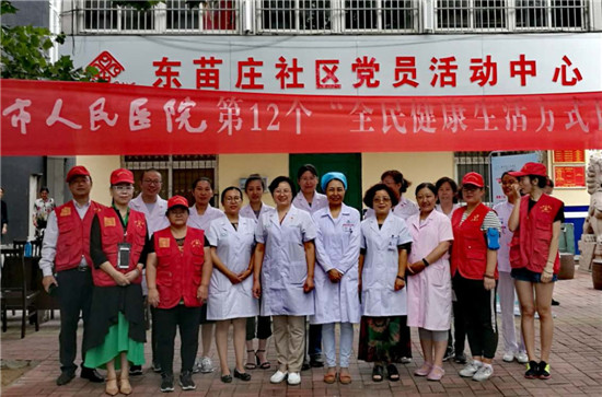 8月31日上午,临沂市生命关怀协会协会携手临沂市人民医院健康义诊走进临沂市兰区东苗庄社区 ,开展了主题为“三减四健,全民行动”的第12个“全民健康生活方式日”活动,为该社区居民100多人进行了健康义诊。