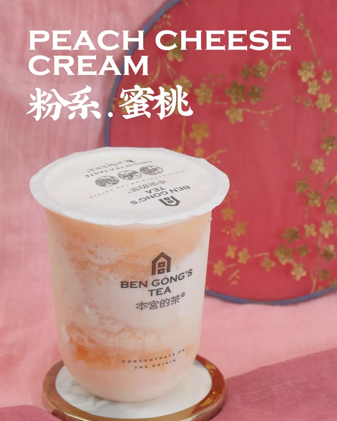 将芝士奶盖、蜜桃果肉、奶冻