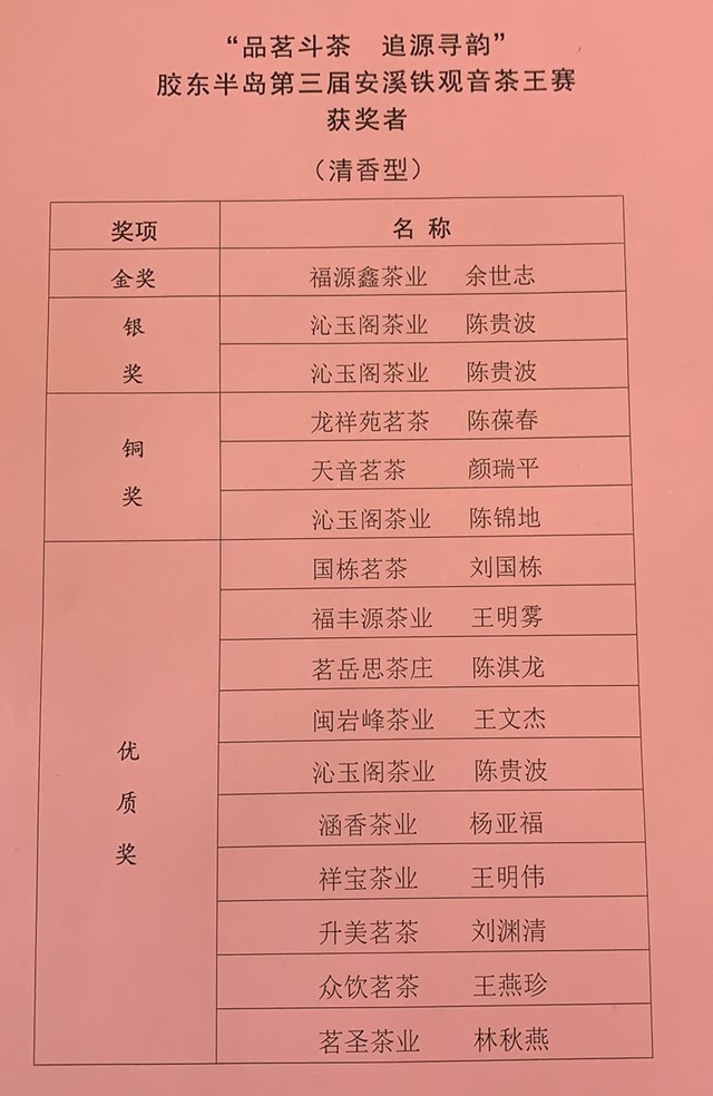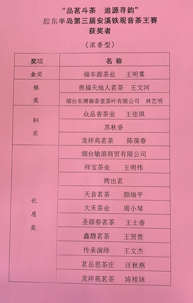 12月26日晚,在烟台大成门酒店举行了茶王赛颁奖典礼暨茶王品鉴会,大家在领略到品质上乘的安溪铁观音的同时,还欣赏到了茶歌茶舞等传统茶文化节目。(赢长)