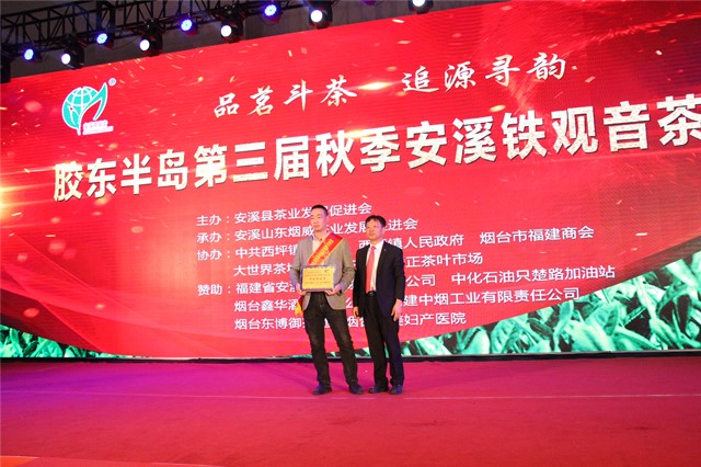 2019年12月25日,由安溪县茶业发展促进会主办,安溪山东烟威茶业发展促进会和大世界茶城承办,中共西坪镇委员会、西坪镇人民政府、烟台市福建商会共同协办的胶东半岛第三届秋季安溪铁观音茶王赛在烟台大世界茶城完美收官,安溪县人民政府副县长王金章先生和安溪县茶叶发展促进会会长谢志攀先生出席了本次活动。