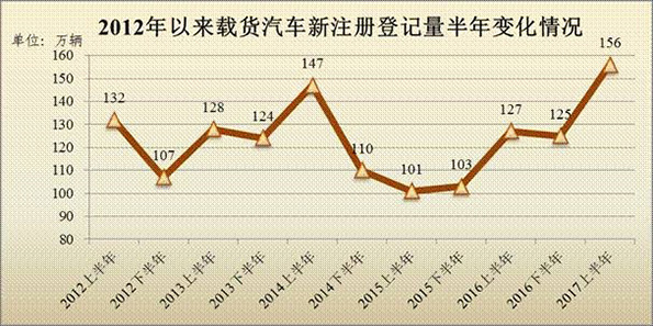 载货汽车保有量达2273万辆,新注册登记量达历史最高水平。截至6月底,全国载货汽车保有量达2273万辆,2017年上半年载货汽车新注册登记量达156万辆,为历史最高水平,反映出货运市场明显回暖。