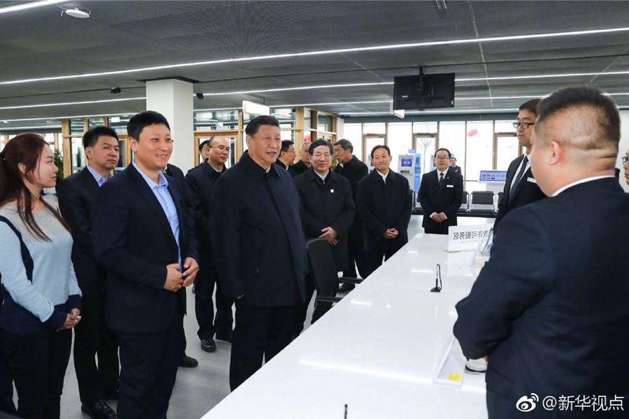 16日上午,雄安新区政务服务中心,部分进驻雄安新区的企业代表看到总书记来了,热情围拢上来。习近平得知他们是到雄安新区的第一批创业者,勉励他们说,我们建设雄安新区,需要各类企业共同参与。无论是国有的还是民营的企业,无论是本地的还是北京的企业,都要把握住这个千载难逢的机会,把握住历史机遇,做民族复兴、改革创新的弄潮儿,创造新的辉煌业绩。(记者张晓松、鞠鹏、谢环驰)