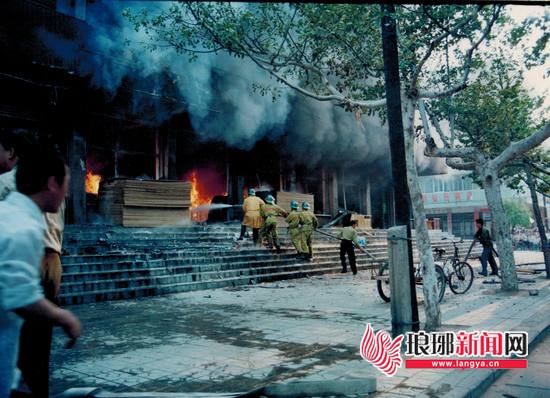 上世纪八九十年代时消防员进行灭火救援。