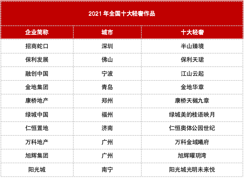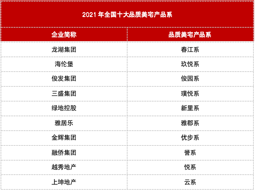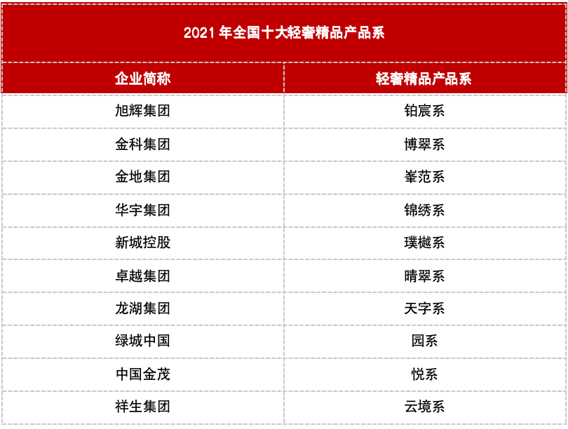 在今年克而瑞发布的《中国房地产企业产品力白皮书》中,对《中国房地产企业产品力百强》、《全国十大产品系》(含豪宅、轻奢精品和品质美宅)以及《全国十大作品》(含高端作品、轻奢作品和品质作品)三大榜单进行了测评。