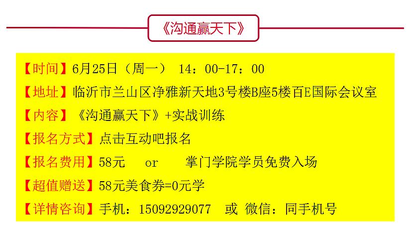 《沟通赢天下》是沟通力提升系统课程的开山课程,志在帮助亿万中国职场精英提升沟通能力,助力职业成长!