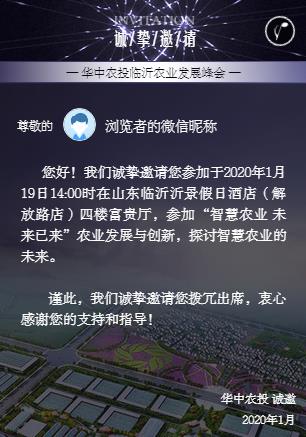 华中农投临沂农业发展峰会2020年1月19日邀请您智慧农业,未来已来