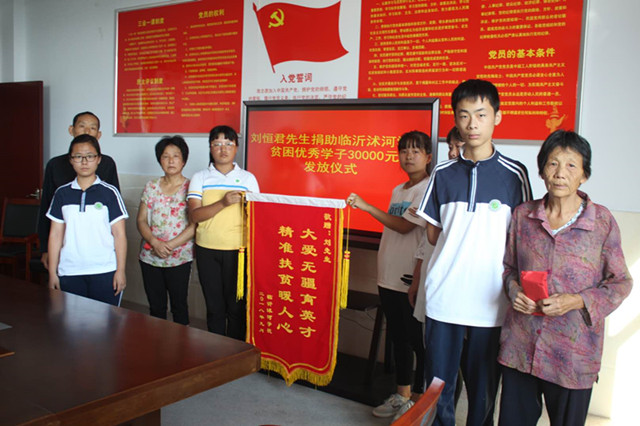 9月11日,在临沂沭河学校综合楼三楼会议室爱心人士刘恒君先生向沭河学校贫困优秀生捐助爱心助学金仪式。