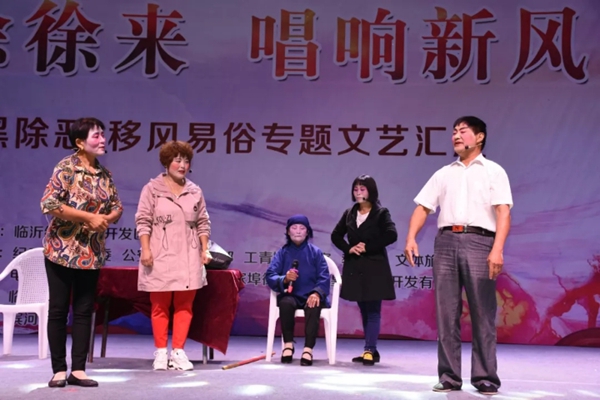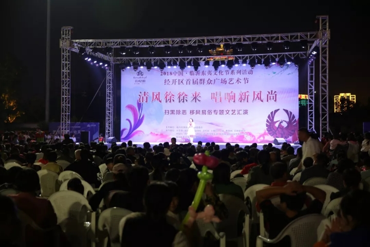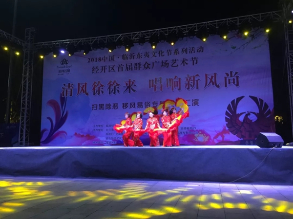 9月28日晚,临沂东夷文化节系列活动“清风徐徐来,唱响新风尚”扫黑除恶、移风易俗专场文艺汇演持续开展。活动现场灯火通明,人群攒动,社区群众近千人观看本次汇演。