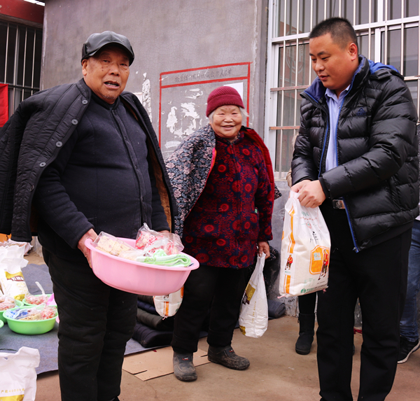 捐助现场,该村80岁以上的部分老人领取了米面、棉衣及部分生活用品,对腿脚不方便的老人,在该村付绍国书记的带领下,志愿者们亲自将捐赠的物品登门送到老人的家中,并亲切问候老人。朴素的老人没有华丽的语言来表示感谢,只是默默的念叨着“真好,真好。”志愿者依依不舍告别,老人在门口远远目送。