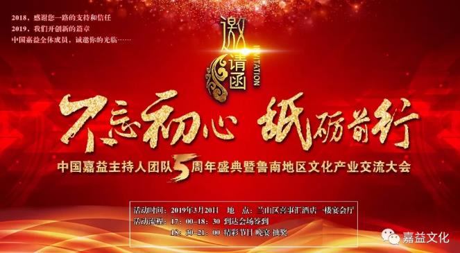 中国嘉益主持人团队五周年盛典 暨鲁南地区文化产业交流大会!