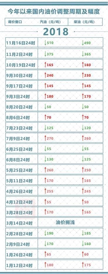 年内油价变动一览:13涨8跌1搁浅