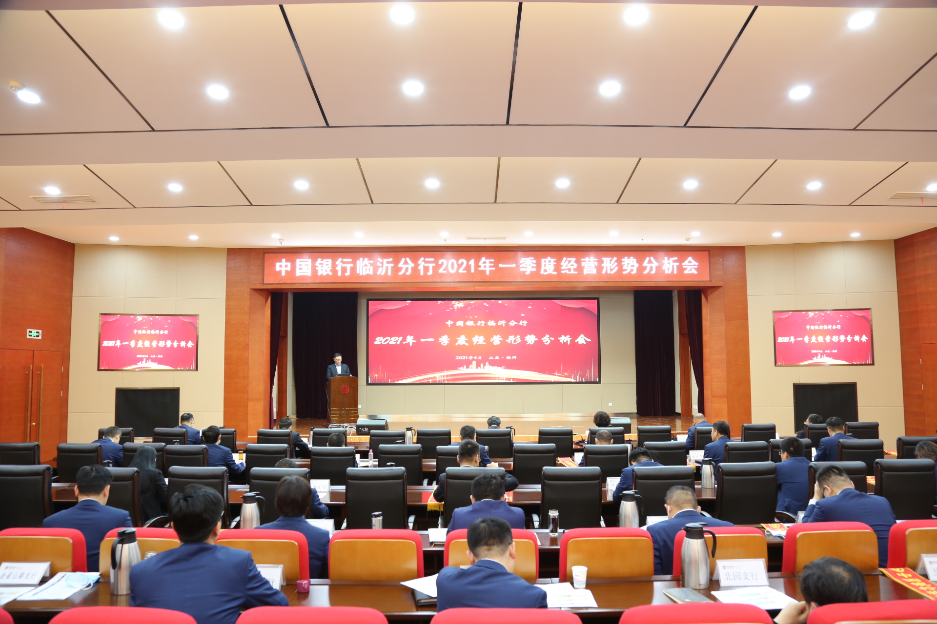 4月25日,中国银行临沂分行召开2021年一季度经营形势分析会,对全行一季度工作进行总结,统筹部署下阶段重点工作,对“开门红”竞赛中涌现出的先进集体进行隆重表彰。分行行长室成员,各支行行长、分行各部门主任参加会议。