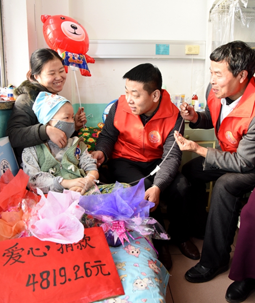 2016年12月4日,爱心志愿者陪伴白血病儿童朱立帅过平安夜。