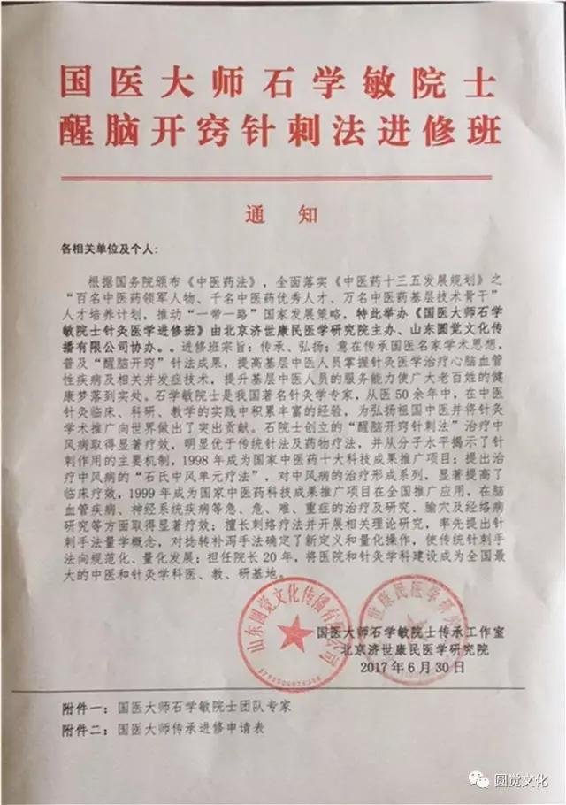为落实国家《中医药十三五发展规划》,山东圆觉文化传播有限公司联合北京济世康民医学研究院特此举办《国医大师石学敏院士针灸医学进修班》,宗旨是来弘扬国医思想,传承针灸技法,提高中医从业者的针灸技能。