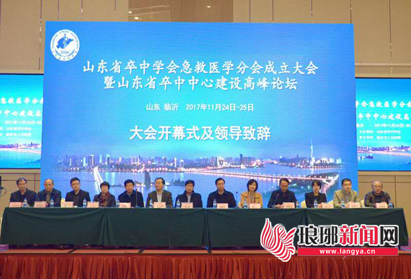2017年11月24日至25日,由山东省卒中学会主办、临沂市人民医院承办的山东省卒中学会急救医学分会成立大会即山东省卒中中心建设高峰论坛胜利召开,临沂市人民医院副院长车峰远同志主持大会开幕式,副院长、南医疗区院长张高山同志、临沂市卫计委医学会办公室赵琴主任出席会议并致辞。山东省卒中学会周盛年会长、中国卒中学会张茁秘书长、郑州大学第一附属医院许予明教授、北京急救中心中区分中心李斗主任、复旦大学附属华山医院曹文杰教授、第二军医大学长海医院杨鹏飞教授、郑州大学第一附属医院李玉生教授、山东大学齐鲁医院王翠兰教授等领导及专家教授出席会议并做精彩学术报告,来自全省卒中急救领域同仁200余人参会。