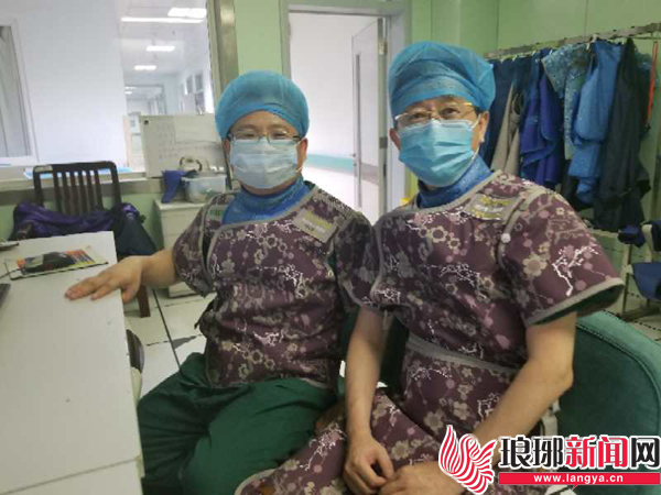 心脏介入手术,欧知宏主任(右)和同事身穿30斤重“铅衣”。