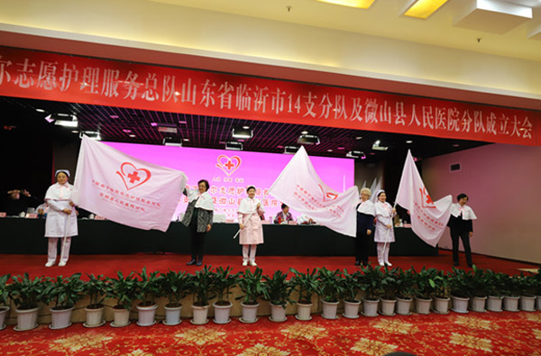 12月22日上午,由临沂市护理学会、临沂市红十字会联合举办的中国南丁格尔志愿护理服务总队临沂市14支分队暨微山县人民医院分队成立大会在临沂宾馆临沂大学店隆重举行。来自全市47家市直、县区护理分队志愿者及相关县区红十字会常务副会长共400余人参加会议,共同见证这一重要时刻。
