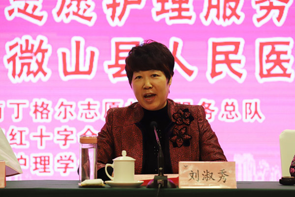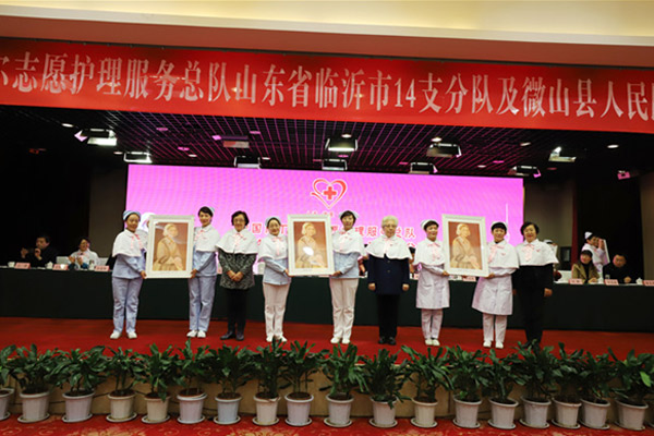 市总工会刘淑秀主席在现场讲话中传达了市委书记王玉君对市南丁格尔志愿服务队做好护理志愿服务工作的批示精神,强调要发挥队伍作用,广泛开展符合群众需要的护理服务活动,助力全市精神文明建设和经济社会发展。刘淑秀对新团队的成立表示热烈祝贺,表示此次14支分队的成立再次壮大了我市南丁格尔护理志愿服务队伍力量,同时也对志愿者提出了明确要求。一是要充分认识开展护理志愿服务的重要性和必要性;二是要积极开展主题鲜明、专业优质的护理志愿服务;三是要打造具有沂蒙特色的护理志愿服务品牌。