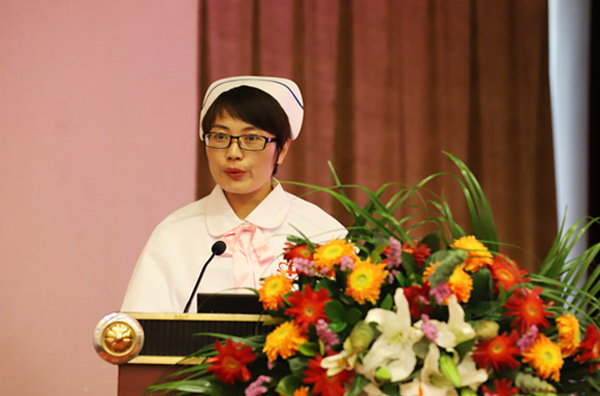 邹德凤老师现场做个人先进事迹报告。邹德凤用朴实的语言讲述了自己在平凡岗位上创造的不平凡业绩,让大家更加了解到南丁格尔奖章背后不为人知的艰辛。