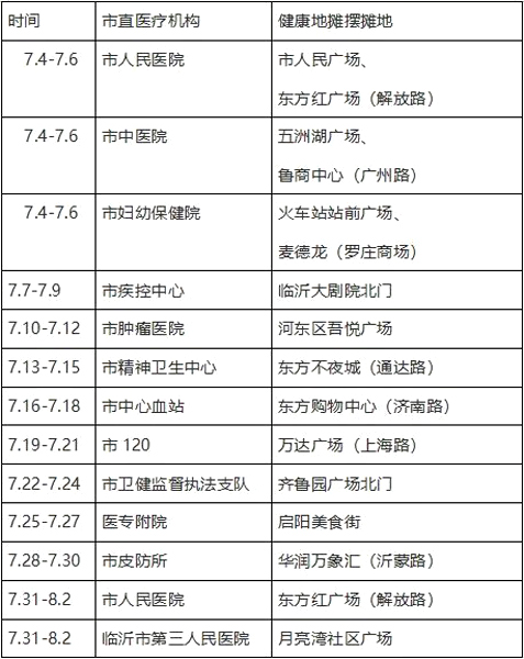 另外,临沂市疾控中心、临沂市中心医院、山东医专附院、临沂市皮肤病医院,临沂市精神卫生中心以及市肿瘤医院等各大市直卫生系统将分别在各自区域开展形式各异“摆摊”义诊,为周边群众提供周到的疾病咨询服务和形式多样的健康科普宣教,在疫情防控的常态期,更全面地为市民普及健康知识,增强自我防护意识。