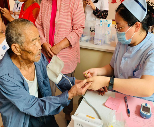 虽然到了午饭时间,但专家们还是认真地对待着每一位就诊患者。前来义诊的村民络绎不绝,很多人排队测量血压、血糖和心电图。“前来义诊的村民以老年人居多,问题多集中在心脑血管、胃肠道、内分泌、疼痛等方面,在今后的活动中我们会加强对这些问题的关注。”孙晓琳科长表示。