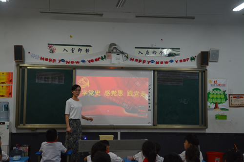 队会课上,辅导员精心制作了PPT,满怀激情讲解了中国共产党艰难诞生、曲折求索、不断发展壮大的历程,队员们认真地在本子上记录着要点,了解到党的光荣历史和丰功伟绩。