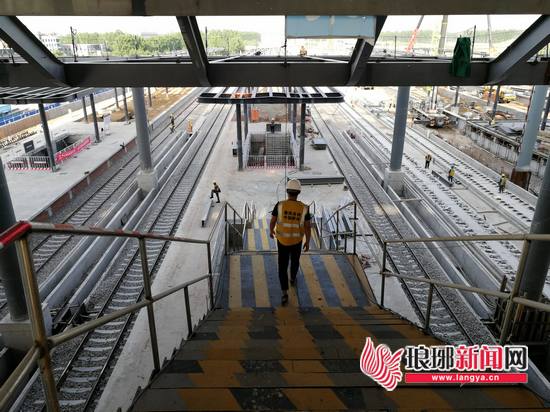候车层的东侧,几条临时搭建的阶梯连接到候车层下方的站台层,以后我们乘坐高铁时,就是从这里分别通往临沂北站的4个站台。“轨道线内的工作还在由中铁施工中,我们目前正在搭建各个站台的雨棚,其他的附属设施也正在施工,旅客也就是从这4个站台踏上鲁南高铁的10条线。”中建八局第一建设有限公司相关负责人向记者介绍。