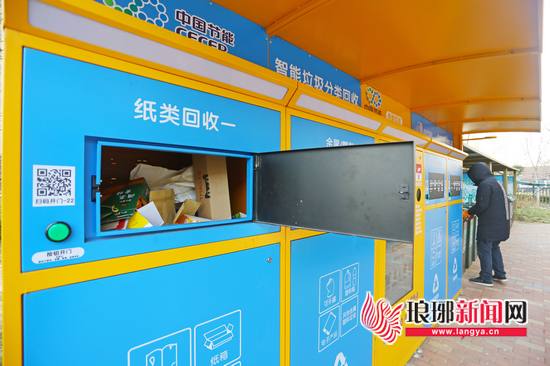 在河东区怡海国际新城小区北门垃圾投放点,一个大块头的智能垃圾分类回收箱格外引人注意。居民只要扫描该垃圾箱上的二维码,完成关注注册后,再通过微信扫描纸类回收箱、塑料金属回收箱、纺织品回收箱等箱门上的开箱二维码,相应箱门就会自动打开。在居民完成投放后,垃圾箱会自动称重,并将所获积分累计到居民名下,所得积分可当作现金,在小区积分兑换处兑换生活用品。