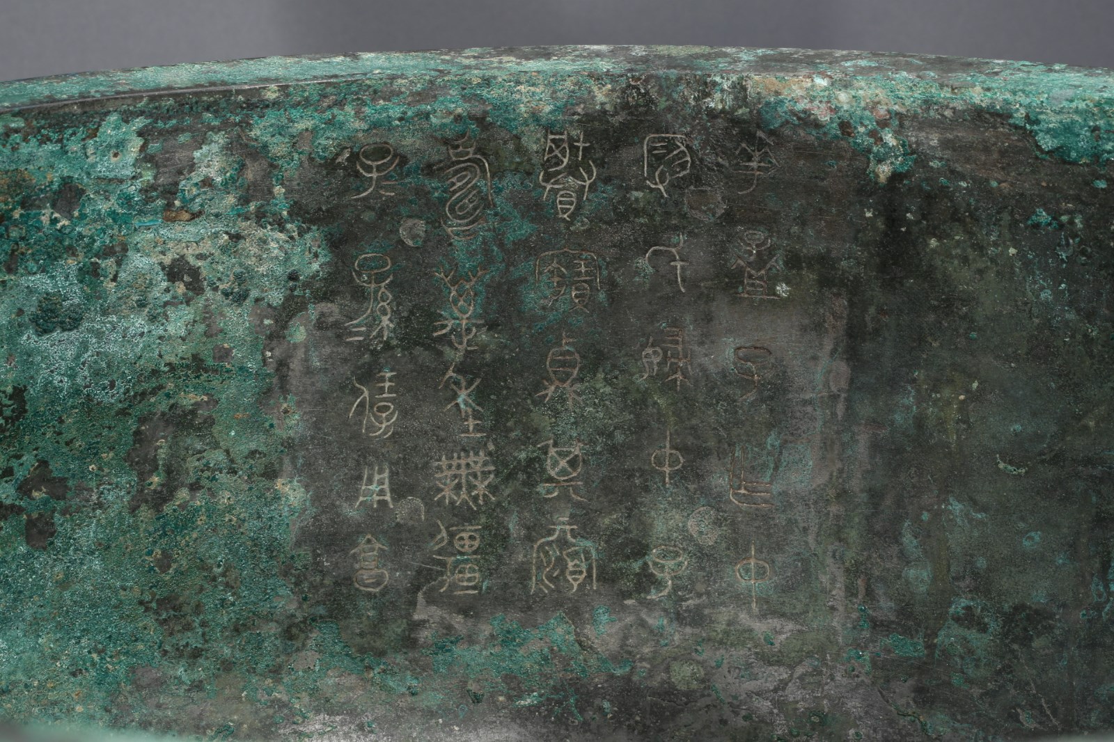 “华(芈)孟子”鼎,通高59.5厘米、口径55.5厘米,重量54.5公斤。盖微隆,盖面中部有一桥状钮,盖两侧内凹呈“山”形,与鼎耳相扣接。