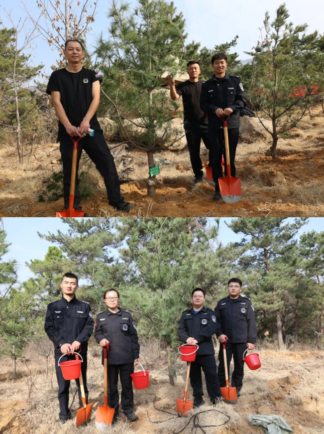 春风拂面,春意盎然。“警”色怡人,再添新绿。3月11日上午,在植树节来临之际,蒙山分局党委联合沂蒙山旅游发展有限公司党支部开展“同植东山苍翠,共享绿水青山”植树党建共建志愿活动。分局党委书记、局长曹晓飞,指挥中心、政工监督室、法制大队主要负责同志及各单位民辅警共计40余人参加。