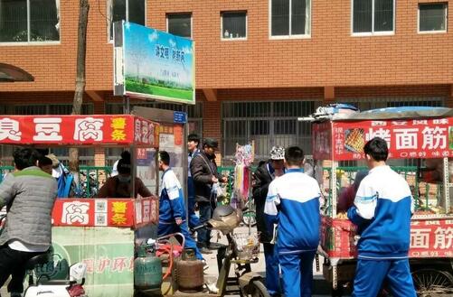 沂蒙晚报记者注意到,三轮车摊位一个紧挨一个,放学后,许多学生涌向各个摊位,挂在车上的液化气罐特别显眼,部分学生紧靠着液化气罐,并未意识到身边的安全隐患。
