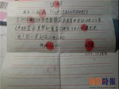 通过多名村民及赵先生的介绍,记者了解到,2012年4月24日,赵亮在其合法妻子李群没有离婚的情况下,与婚外情人李萌萌生一女孩,名叫李昕月,当时是在章丘区人民医院出生,但在出生证明上,签字人为赵亮原来的司机时健。可病例剖腹产手术签字是赵亮,手术签字一栏上家属签字为赵亮。