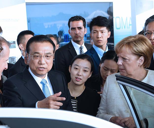李克强与德国总理默克尔共同出席中德自动驾驶汽车展示活动