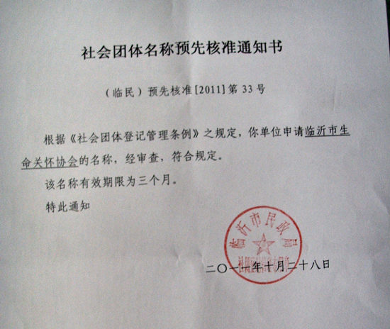 之后经过长期的探索与准备,临沂市生命关怀协会(筹)正式起航,等时机成熟,将再次申请临沂市民政局进行社团登记。