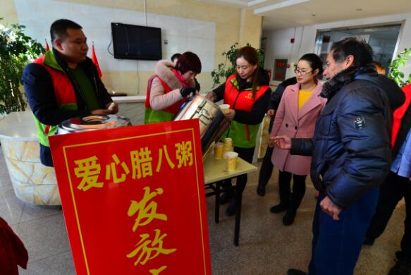 临沂民生网讯:1月24日是传统节日腊八节,在寒潮来临的临沂市,室外气温达到零下九摄氏度,寒冷的天气没有阻挡市民奉献爱心的热情,为营造浓厚节日氛围、弘扬志愿服务精神,“爱心腊八粥,温暖伴罗庄”活动举行,为罗庄区敬老院老人、城市美容师、“星星的孩子”、低保户贫困户、市民群众送去节日的温暖祝福。该活动由罗庄区委组织部七月公社、共青团罗庄区委联合罗庄区沂蒙义工协会共同举办,七月公社“遇见”预备党员志愿者服务队、“拾光”大学生村官志愿者全程参与。
