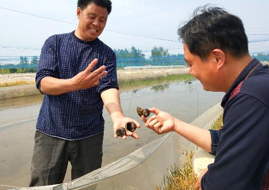 临沂民生网5月9日讯:“瞧,这一个福寿螺一年可产卵20~40次,产卵量3~5万粒,基本上满足了养殖水蛭的活饲料。只要用好养殖‘生物链’,每亩水蛭省三千。”5月7日,在郯城县马头镇敬伟家庭农场水蛭养殖场主陈敬伟向记者介绍道。