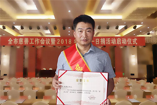 7月24日上午,临沂市慈善工作会议暨2018年“慈心一日捐”启动仪式举行。会上,临沂同德中医医院党支部书记、院长尤英志荣获“慈善之星”荣誉称号。市人大常委会主任杜德昌亲自为尤英志颁奖。