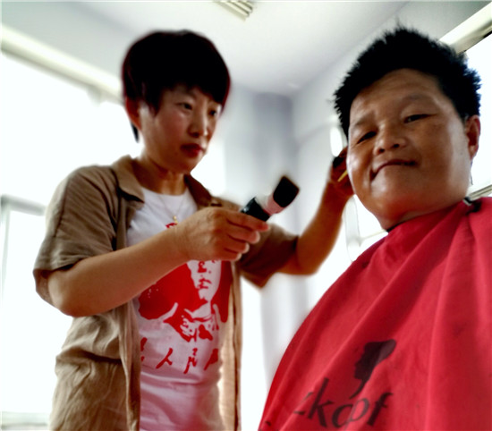 彭凯迪和江岩团队用娴熟的技艺为敬老院的老人们义务理发。