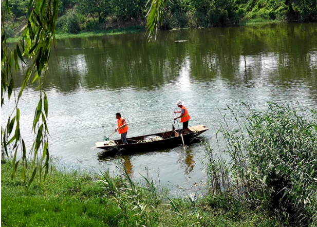 临沂民生网讯:7月25日,在郯城县马头镇境内的白马河里,两位环卫工人打捞水面漂浮物的动作构成了一幅生态美景图画。至此,郯城县白马河通过实施科学规划和美化、亮化、净化建设,彻底根治环境和水质污染取得明显效果。白马河畔环境优雅,绿色宜人,鱼虾成群,水鸟休憩,形成人与生态和谐生存,风景如画的“美景河”。