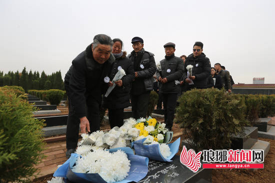 烈士亲属和军地领导,依次走到王成龙烈士的墓前,献上鲜花,深情凝望着烈士的墓碑,和英雄做最后的道别。