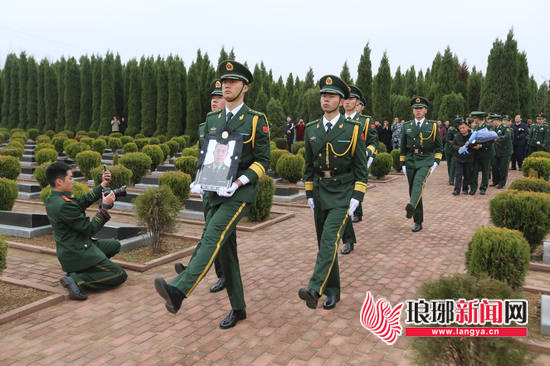 5日上午10时许,随着哀乐声响起,王成龙烈士的骨灰由礼兵护送至烈士陵园,军地单位及各界群众代表及烈士亲属肃立两侧,向王成龙烈士致以崇高的敬意。