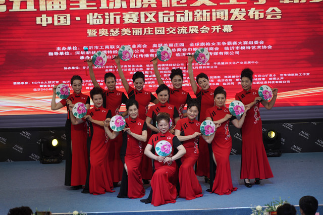 会上,临沂市工商联文化产业商会会长解晓方、临沂市台办原主任徐有顺、全球旗袍女王争霸赛中国临沂赛区主席李佳荣、奥瑟美丽庄园董事长赵贵梅、沂水兰亭旅业董事长张文霞、临沂模特艺术协会会长管恩洁、贵州昭阳酒业有限公司总经理林德祥、NDR女大颜究室董事长SLY、香港润洋珠宝董事长杨慧、临沂九健科技有限公司董事长刘荣健、舞彩艺术学校校长沂南赛区主席高树超、平邑麓洲文化产业中心的的总经理杨海涛作为本次新闻发布会的嘉宾共同触摸启动屏,宣布第五届全球旗袍女王争霸赛中国临沂赛区正式启动。