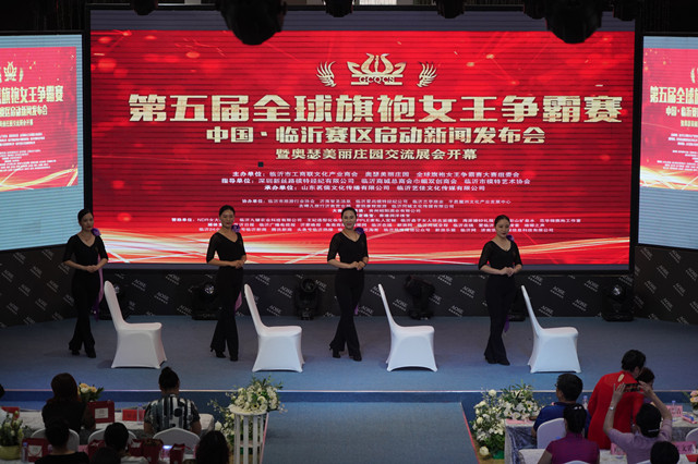 发布会现场,临沂市工商联文化产业商会会长解晓方、全球旗袍女王争霸赛中国临沂赛区主席李佳荣、临沂模特艺术协会会长管恩洁分别上台为大赛致辞。