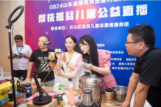 本次会议上,还设置了一场公益直播带货的活动,公益直播带货的活动在分会场与大会同步进行,特邀金鹏夫人潮搭、查理王、大美人阿露等临沂电商知名主播为本次活动公益带货大使,现场选品接力直播。
