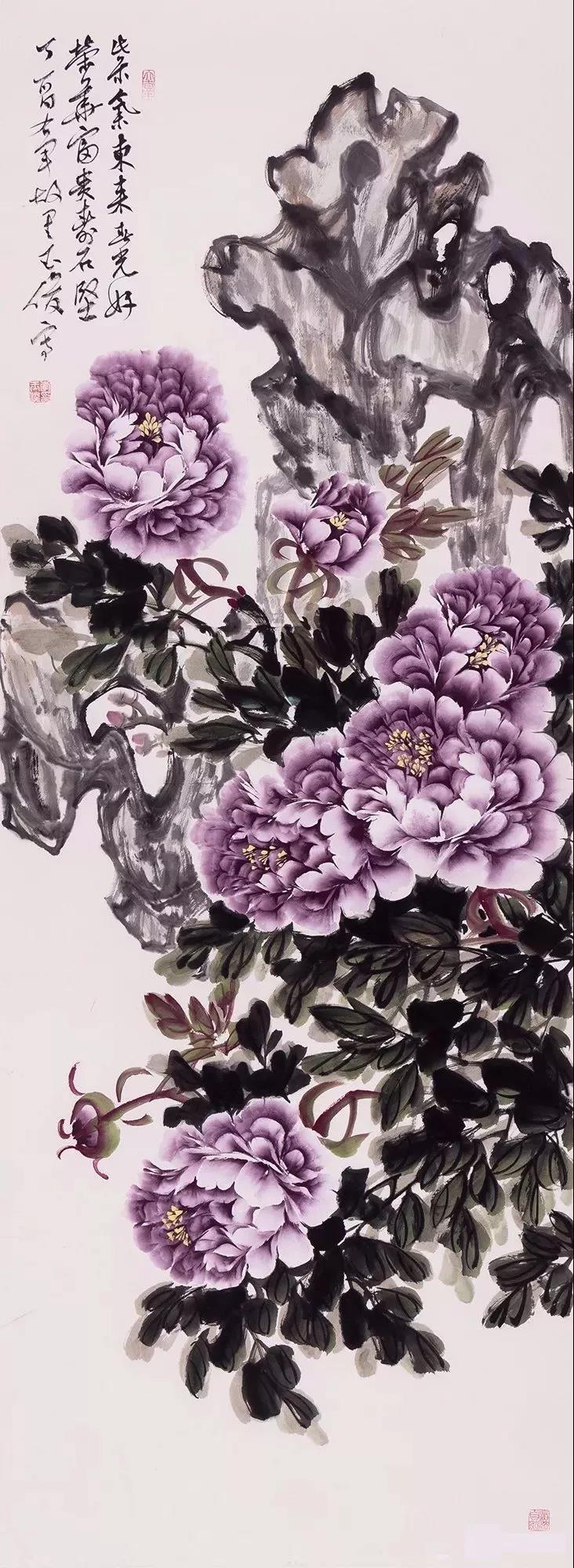 李玉俊先生的绘画作品,以书入画,线条质量极高,设色、造型、神态别有风趣。自古以来、历朝历代崇尚以书入画为最高。八大山人,吴昌硕、齐白石均是佼佼者,备受文人推崇。他的花鸟画作品,书法功底深厚,以篆书去写树木的枝干,用行草去鸟花卉的藤萝。尤其是他的牡丹,把牡丹那种雍容华贵,“威而不猛、媚而不妖”的富丽堂皇的花中之冠,表现淋漓尽致,国色天香,令人眼明心悦观之而不肯离去。