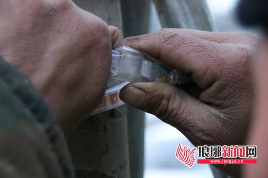 24岁的小张是此次解放路节日亮化工程施工队的一员,他负责连接线路接头,由于线头扣件太小,他索性丢掉手套,粗糙的手臂上满是褶皱。“带手套不方便,虽然赤手有点冷,但能提高接线速度。”小张直言,此次安装施工,他们全部流水作业,有的负责给树干缠绕线路,有的负责给树枝挂小灯,有的则负责连接线路,各自分工,有效提高了工作效率。