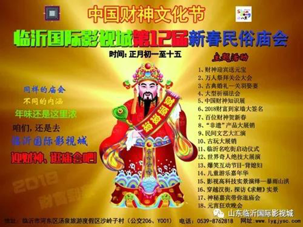 中国财神文化节暨临沂国际影视城第12届新春民俗庙会!