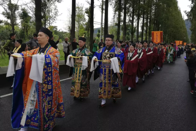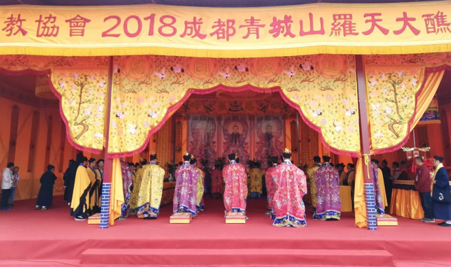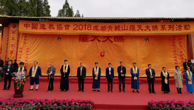10月9日上午, 由中国道教协会主办,四川省道教协会协办,成都市道教协会、青城山道教协会承办的2018成都青城山罗天大醮开幕典礼在青城山新山门举行。