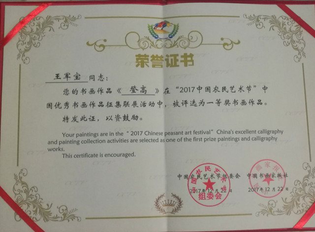 获奖证书及部分作品欣赏: