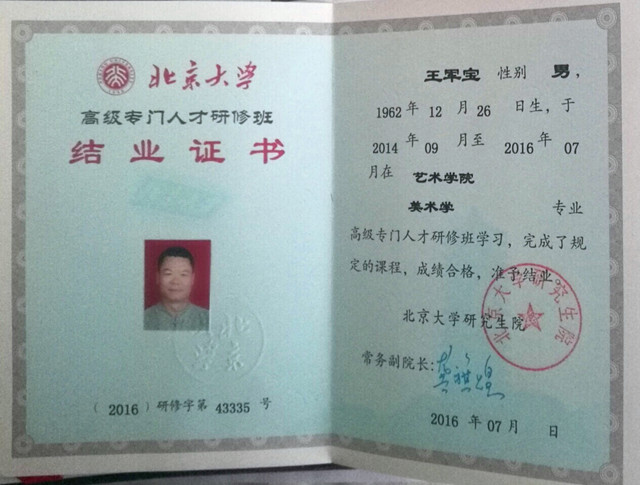 北京大学艺术学院书法方向研究生,师从北京大学书法研究所所长、博士生导师王岳川教授,学习国学和书法。